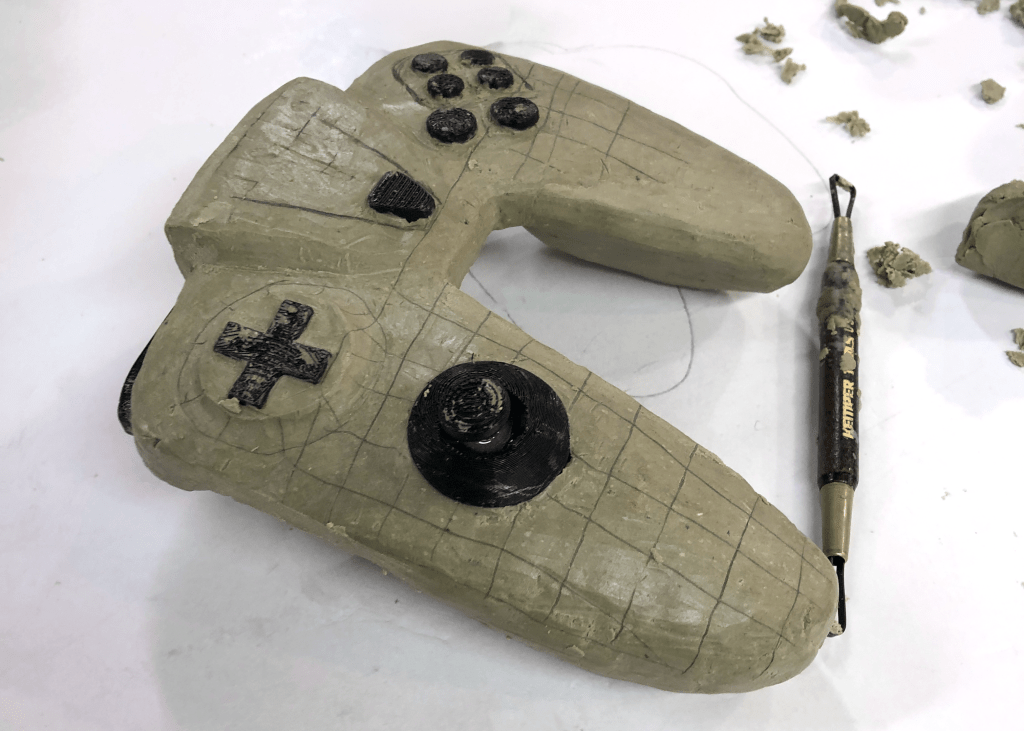 I 3D printed an internal skeleton that represented all the internal components. This allowed me to build up clay around the skeleton with full confidence that the buttons and joystick were in the correct positions relative to each other.