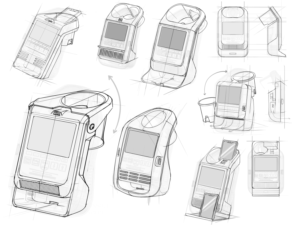 Using the Solidworks data as an underlay I sketched multiple styling concepts, thoughtfully integrating the client’s favorite ideas from the post-it note phase. After several client feedback sessions, I had a final concept that fulfilled Life Fitness’s functional and aesthetic objectives.