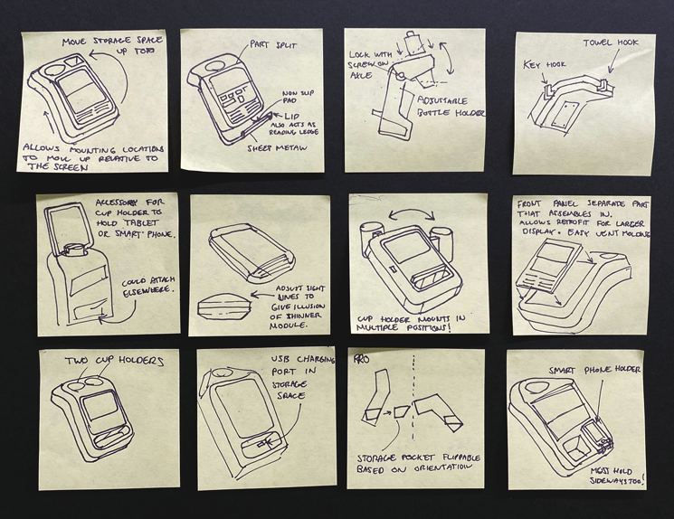I started with creative brainstorming, creating quick “post-it note” sketches to capture and organize the initial concepts.